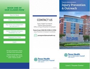 As a Level I Trauma Center it provides total care for every aspect of injury, from prevention through rehabilitation. Please select the accompanying flier thumbnail images for information on prevention of injuries and public education to surrounding communities.