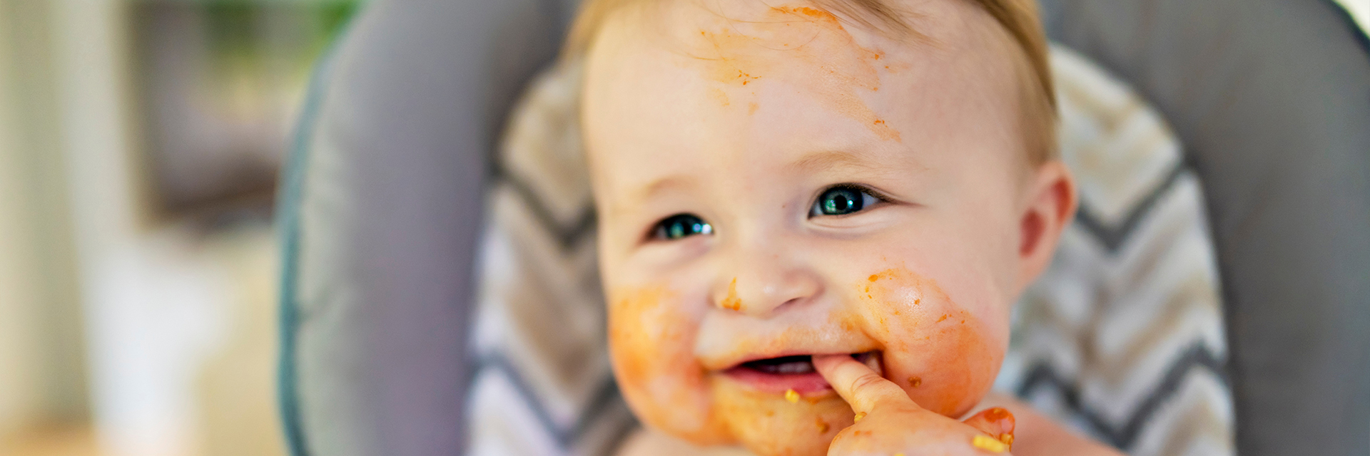 Around this time, it’s fairly common for a baby to experiment with that food in ways that do not involve eating. Some babies delight in dropping or swiping food from their high chair tray onto the floor. They may even smile or giggle after doing it. They aren’t doing it to drive you crazy (although that may be the result); they’re exploring their world. They’re interested in where the food goes once it drops, what will happen to it and whether it will come back.