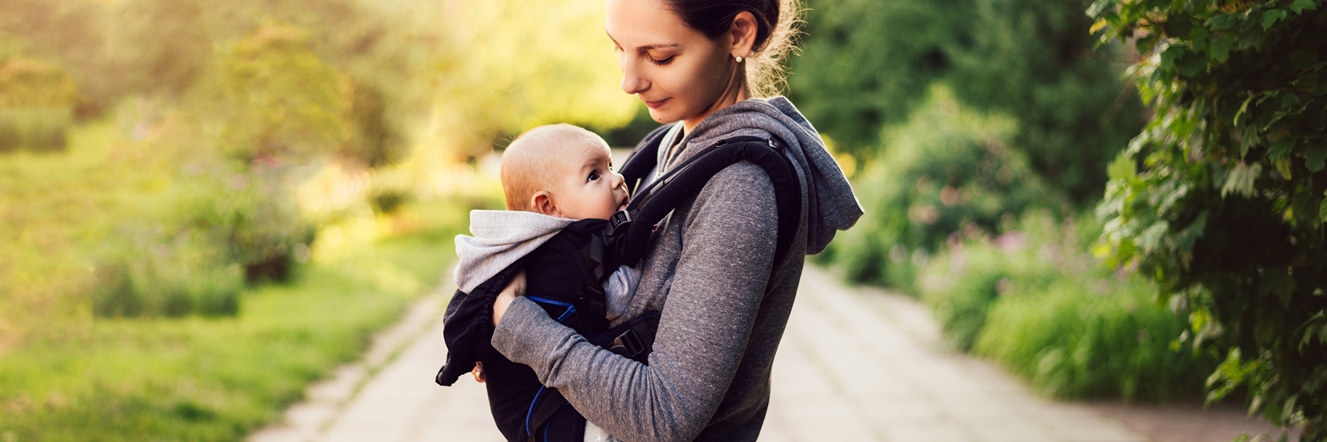 • Many mothers find a front-pack carrier or sling keeps the baby happier on the go and avoids having to push a baby carriage through stores and crowds. If you do use a sling, position your baby’s face at or above the rim of the sling, so that you and your baby can see each other. This reduces the risk of suffocation, too.