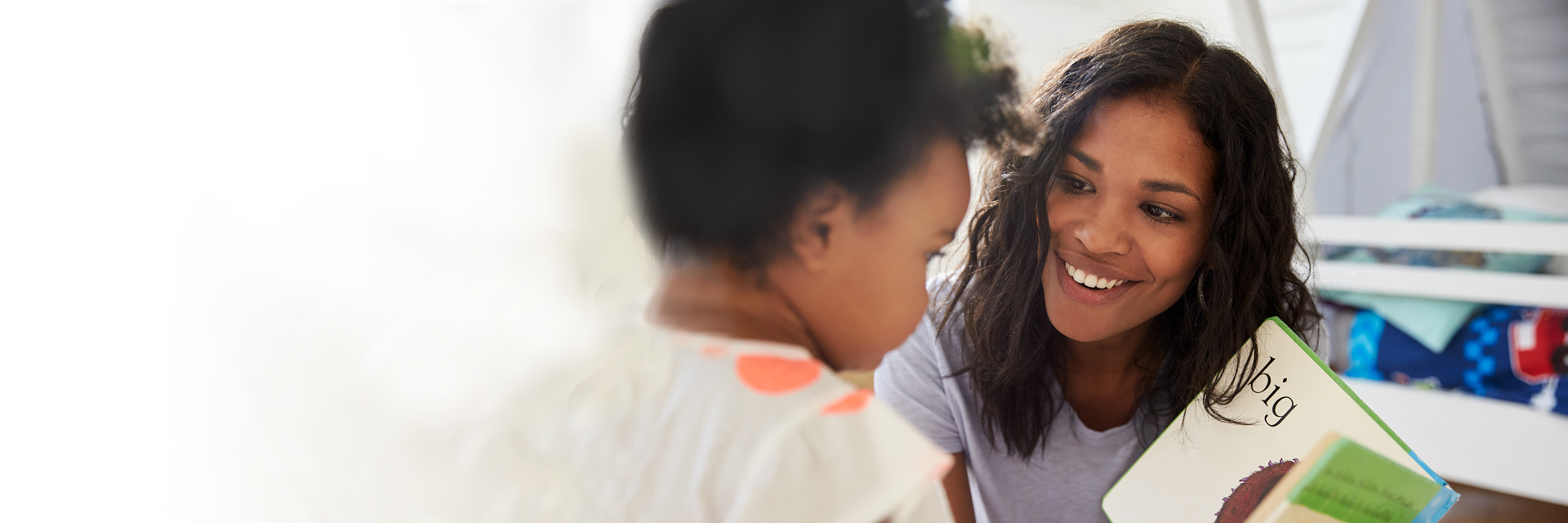 During bath time or while changing clothes, name your baby’s familiar body parts—“nose,” “foot,” “hand”—as you point to his and your own nose, foot, and hand. When reading books together, point out body parts on the characters and name the animals, objects and colors pictured.
